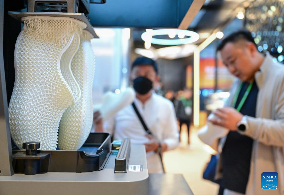 SHANGHAI, 6 noviembre, 2025 (Xinhua) -- Un par de zapatos impresos en 3D son vistos en el área de exposición de Industria Inteligente y Tecnología de la Información de la VIII Exposición Internacional de Importaciones de China (CIIE, por sus siglas en inglés), en Shanghai, en el este de China, el 6 de noviembre de 2025. La VIII CIIE, que se inauguró en Shanghai el miércoles y durará hasta el 10 de noviembre, muestra equipos avanzados, tecnologías de vanguardia y productos innovadores en campos como la ciencia y tecnología, la industria manufactura y médica. (Xinhua/Cai Xiangxin)