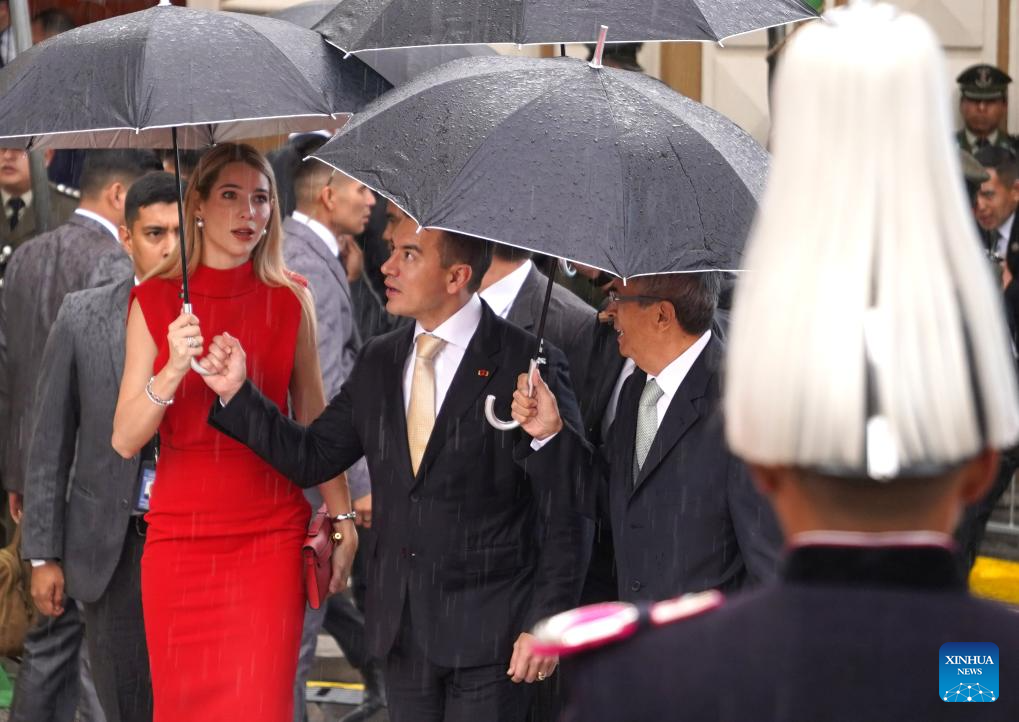 El presidente ecuatoriano, Daniel Noboa (c), llega a la ceremonia de juramentación del presidente electo boliviano, Rodrigo Paz, en la Asamblea Legislativa Plurinacional, en la ciudad de La Paz, Bolivia, el 8 de noviembre de 2025. Rodrigo Paz juró el sábado como nuevo presidente de Bolivia para el período 2025-2030, con un discurso en el que aseguró que su gestión no estará orientada al control del poder, sino al servicio público. (Xinhua/Javier Mamani)