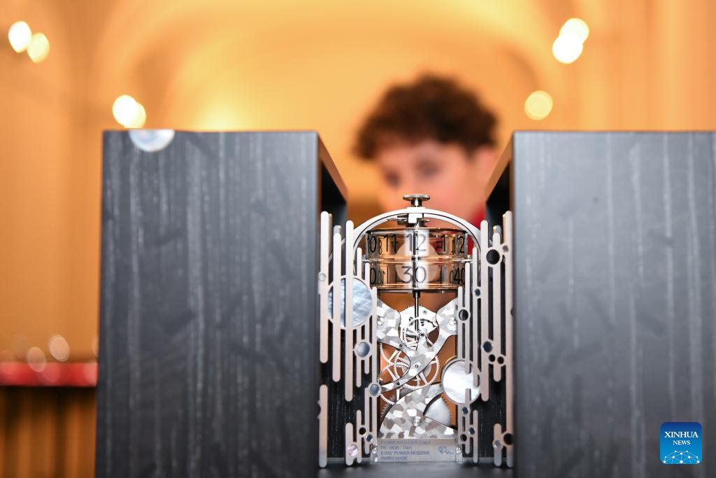GINEBRA, 14 noviembre, 2025 (Xinhua) -- Imagen del 13 de noviembre de 2025 de un reloj creativo visto en la exposición del 25 Gran Premio de Relojería de Ginebra (GPHG, por sus siglas en francés), en Ginebra, Suiza. La marca china independiente de relojes Fam al Hut ganó el jueves el Premio Audacity en el 25 GPHG, considerado por muchos como los "Oscar de la Relojería". Esta es la segunda vez que una marca china ha obtenido un premio GPHG. En 2021, la empresa china CIGA Design ganó el Premio Challenge Watch por su modelo original, "el Planeta Azul". (Xinhua/Lian Yi)