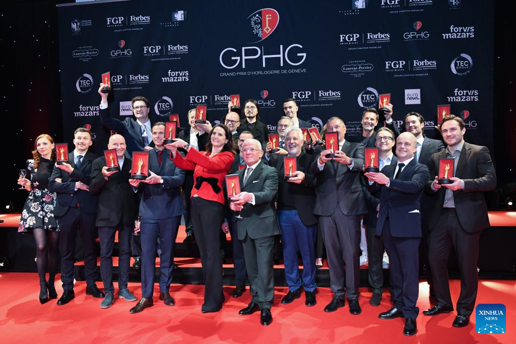 GINEBRA, 14 noviembre, 2025 (Xinhua) -- Imagen del 13 de noviembre de 2025 de Dai Xinyan (c-atrás), fundador de Fam al Hut, asistiendo a la ceremonia de premiación del 25 Gran Premio de Relojería de Ginebra (GPHG, por sus siglas en francés), en Ginebra, Suiza. La marca china independiente de relojes Fam al Hut ganó el jueves el Premio Audacity en el 25 GPHG, considerado por muchos como los "Oscar de la Relojería". Esta es la segunda vez que una marca china ha obtenido un premio GPHG. En 2021, la empresa china CIGA Design ganó el Premio Challenge Watch por su modelo original, "el Planeta Azul". (Xinhua/Lian Yi)