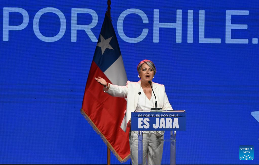 Imagen del 16 de noviembre de 2025 de la candidata a la Presidencia chilena, abanderada de la izquierda y el oficialismo, Jeannette Jara, pronunciando un discurso luego de la primera vuelta de las elecciones presidenciales, en la ciudad de Santiago, capital de Chile. La candidata izquierdista Jeannette Jara y el ultraderechista José Antonio Kast disputarán el balotaje por la presidencia de Chile el 14 de diciembre próximo, tras obtener las primeras preferencias en las elecciones generales del domingo. (Xinhua/Jorge VIllegas)