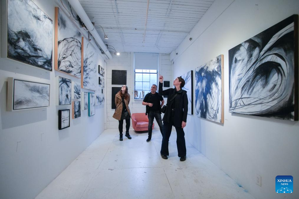 VANCOUVER, 23 noviembre, 2025 (Xinhua) -- Imagen del 22 de noviembre de 2025 de personas observando las obras de un artista en un estudio durante el Eastside Culture Crawl, en Vancouver, Columbia Británica, Canadá. El Eastside Culture Crawl es un festival anual de artes visuales, diseño y artesanías. Este año, el evento de cuatro días presenta más de 500 artistas abriendo sus estudios al público a lo largo de más de 80 edificios en la ciudad. (Xinhua/Liang Sen)