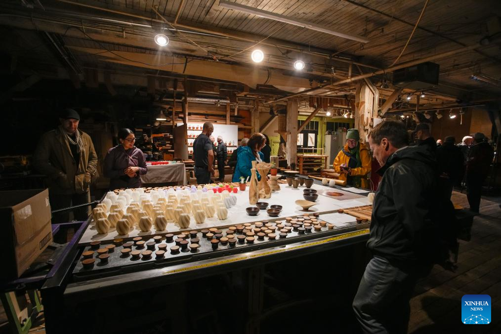 VANCOUVER, 23 noviembre, 2025 (Xinhua) -- Imagen del 22 de noviembre de 2025 de personas visitando el estudio de un artista durante el Eastside Culture Crawl, en Vancouver, Columbia Británica, Canadá. El Eastside Culture Crawl es un festival anual de artes visuales, diseño y artesanías. Este año, el evento de cuatro días presenta más de 500 artistas abriendo sus estudios al público a lo largo de más de 80 edificios en la ciudad. (Xinhua/Liang Sen)