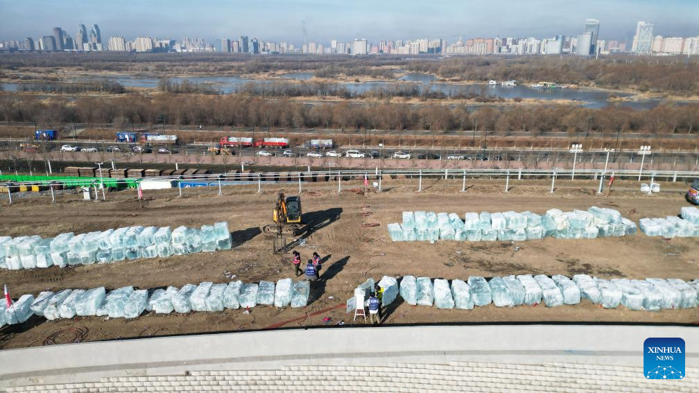 HARBIN, 25 noviembre, 2025 (Xinhua) -- Vista aérea tomada con un dron el 25 de noviembre de 2025 del sitio de construcción del Mundo de Hielo y Nieve de Harbin, en Harbin, en la provincia de Heilongjiang, en el noreste de China. La 27ª edición del Mundo de Hielo y Nieve de Harbin, un reconocido parque temático estacional en Harbin, comenzó oficialmente su construcción el martes. (Xinhua/Liu Yang)