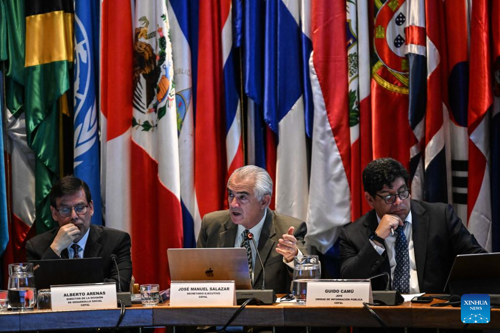 El secretario ejecutivo de la Comisión Económica para América Latina y el Caribe (CEPAL), José Manuel Salazar-Xirinachs (c), habla durante la emisión del estudio anual "Panorama Social de América Latina y el Caribe 2025: Cómo salir de la trampa de alta desigualdad, baja movilidad social y débil cohesión social", en la sede de la CEPAL, en la ciudad de Santiago, capital de Chile, el 26 de noviembre de 2025. El 25,5 por ciento de la población en América Latina y el Caribe, unos 162 millones de personas, estuvo en situación de pobreza por ingreso en 2024, el valor más bajo desde que existe registro, aunque la concentración del ingreso sigue siendo extrema en la región, detalló un informe de la CEPAL. (Xinhua/Jorge Villegas)