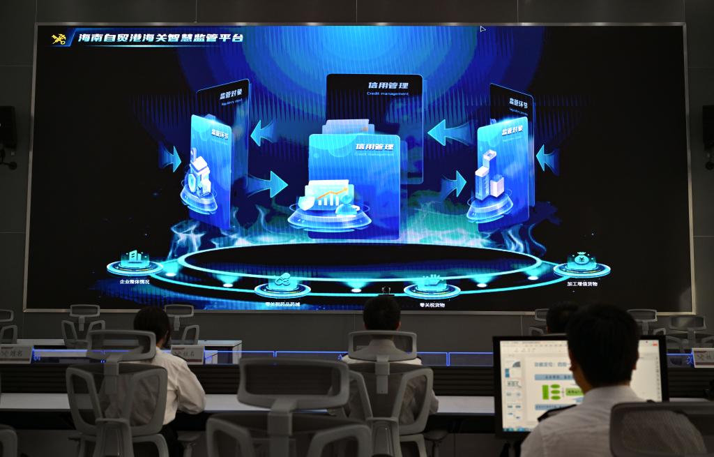 HAIKOU, 28 noviembre, 2025 (Xinhua) -- Imagen del 27 de noviembre de 2025 de la pantalla de una plataforma en línea para la supervisión aduanera inteligente del Puerto de Libre Comercio (FTP, por sus siglas en inglés) de Hainan en el centro de monitoreo de operaciones de servicio de la Aduanas de Haikou, en Haikou, en la provincia de Hainan, en el sur de China. El FTP de Hainan de China iniciará operaciones aduaneras independientes en toda la isla a partir del 18 de diciembre, un hito importante en el impulso de apertura de la segunda economía más grande del mundo pese al creciente proteccionismo global. (Xinhua/Guo Cheng)