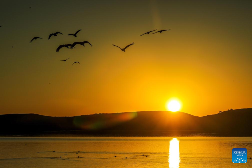 ZHAOTONG, 30 noviembre, 2025 (Xinhua) -- Imagen del 29 de noviembre de 2025 de grullas de cuello negro volando sobre un humedal de la Reserva Nacional Natural de Dashanbao de Yunnan para Grullas de Cuello Negro, en la ciudad de Zhaotong, en la provincia de Yunnan, en el suroeste de China. La Reserva Nacional Natural de Dashanbao de Yunnan para Grullas de Cuello Negro es un importante hábitat invernal y estación de tránsito para las grullas de cuello negro migratorias en la meseta Yunnan-Guizhou. Actualmente, más de mil grullas de cuello negro han llegado a la reserva para pasar el invierno aquí. (Xinhua/Chen Xi)