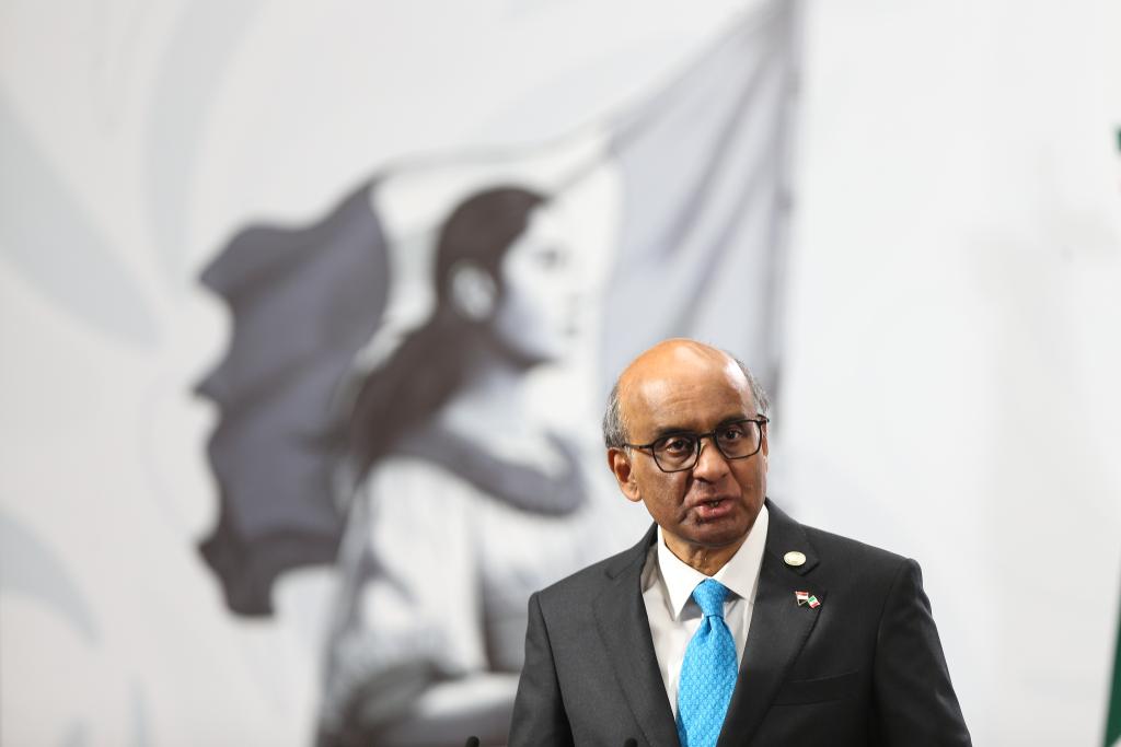 CIUDAD DE MEXICO, 1 diciembre, 2025 (Xinhua) -- El presidente de Singapur, Tharman Shanmugaratnam, habla durante una conferencia de prensa conjunta con la presidenta mexicana, Claudia Sheinbaum, en Palacio Nacional, en la Ciudad de México, capital de México, el 1 de diciembre de 2025. (Xinhua/Francisco Cañedo)