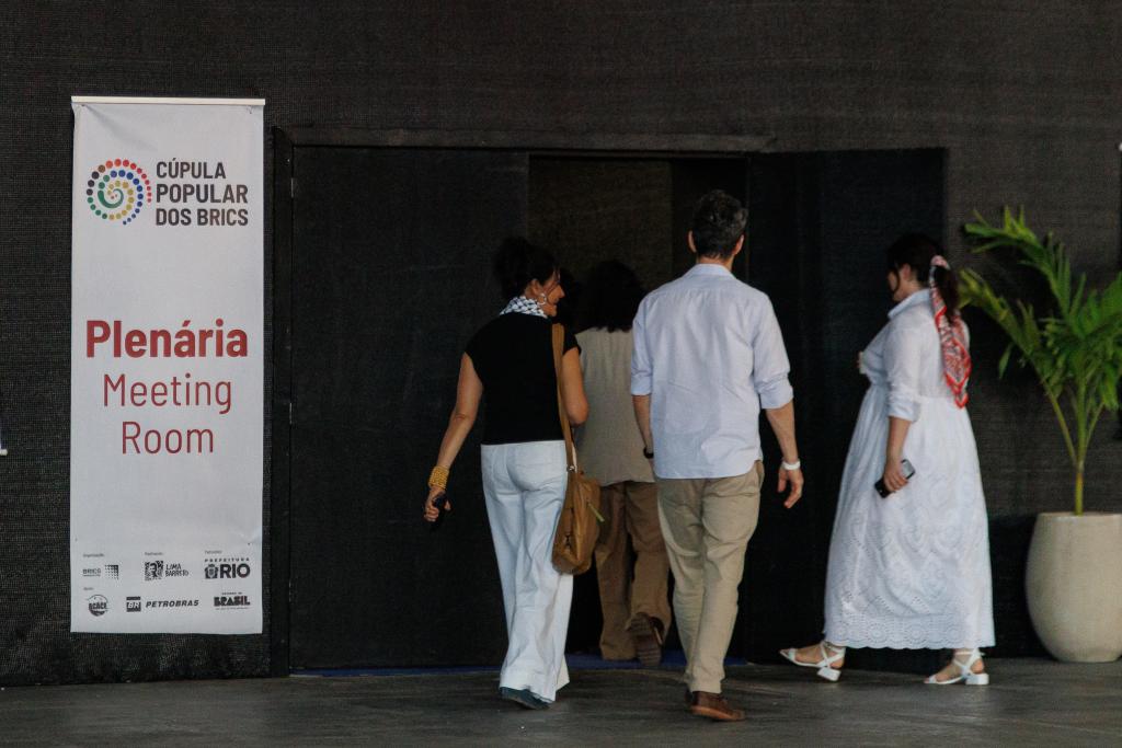 RIO DE JANEIRO, 1 diciembre, 2025 (Xinhua) -- Personas ingresan a una sala de reuniones durante la Primera Cumbre Popular del BRICS, en Río de Janeiro, Brasil, el 1 de diciembre de 2025. La Primera Cumbre Popular del BRICS comenzó el lunes en Río de Janeiro, Brasil, con el objetivo de articular la participación de la sociedad civil en la formulación de propuestas para fortalecer la cooperación del Sur Global dentro del bloque, compuesto por 11 economías emergentes. (Xinhua/Claudia Martini)