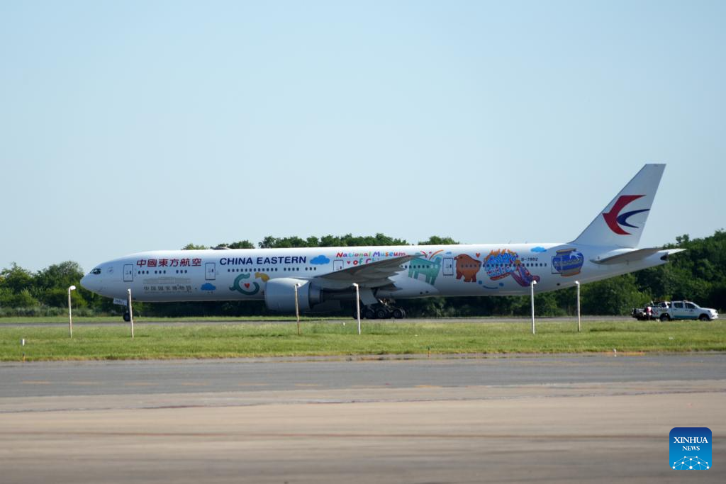 La aeronave que aterrizó en Buenos Aires es un avión de fuselaje ancho Boeing 777, cuya rotulación fue diseñada de manera conjunta por China Eastern Airlines y el Museo Nacional de China con imágenes de seis objetos preciosos que forman parte de la colección del museo.