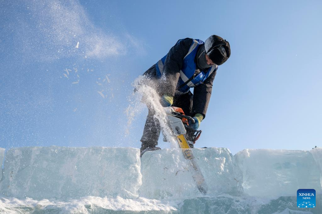 HARBIN, 5 diciembre, 2025 (Xinhua) -- Un trabajador recorta un pedazo de hielo en el sitio de construcción del Mundo de Hielo y Nieve, en Harbin, en la provincia de Heilongjiang, en el noreste de China, el 5 de diciembre de 2025. La edición 27 del Mundo de Hielo y Nieve en Harbin ha comenzado recientemente su trabajo de construcción, que involucran a más de 10.000 trabajadores y aproximadamente 1.000 máquinas. Se espera que el área del parque se extienda hasta los 1,2 millones de metros cuadrados, la más grande de todas las ediciones en la historia. (Xinhua/Zhang Tao)