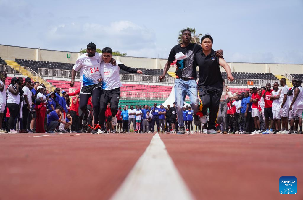 NAIROBI, 5 diciembre, 2025 (Xinhua) -- Imagen del 4 de diciembre de 2025 de participantes compitiendo en la carrera de tres piernas en los Juegos de la Amistad China-Kenia, en Nairobi, Kenia. Los primeros Juegos de la Amistad China-Kenia se llevaron a cabo el jueves en Nairobi, capital de Kenia, como parte de los esfuerzos para reforzar los lazos bilaterales. (Xinhua/Han Xu)