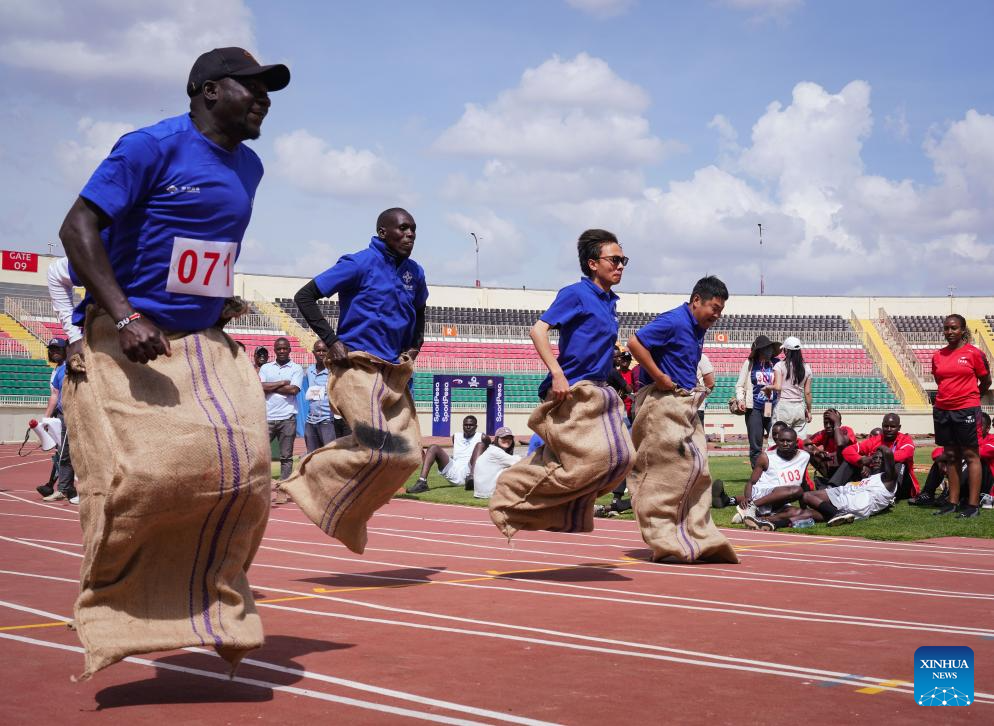 NAIROBI, 5 diciembre, 2025 (Xinhua) -- Imagen del 4 de diciembre de 2025 de participantes compitiendo en la carrera de sacos en los Juegos de la Amistad China-Kenia, en Nairobi, Kenia. Los primeros Juegos de la Amistad China-Kenia se llevaron a cabo el jueves en Nairobi, capital de Kenia, como parte de los esfuerzos para reforzar los lazos bilaterales. (Xinhua/Han Xu)