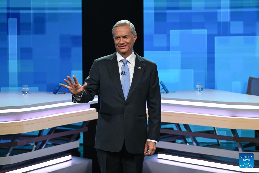 Imagen del 9 de diciembre de 2025 del candidato a la Presidencia chilena, líder de la ultraderecha local, José Antonio Kast, reaccionando previo al debate presidencial organizado por la Asociación Nacional de Televisión de Chile, en Santiago, capital de Chile. Durante el último debate presidencial en Chile entre la candidata izquierdista Jeannette Jara y el ultraderechista José Antonio Kast, llevado a cabo la noche del martes, los postulantes marcaron sus diferencias en material de seguridad y prometieron fuertes medidas para paliar la inmigración ilegal, además de anunciar que renunciarían a sus respectivos partidos, en caso de resultar electos el próximo domingo 14 de diciembre en la segunda vuelta electoral. (Xinhua/Jorge Villegas)