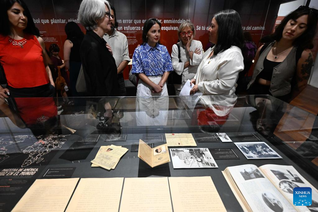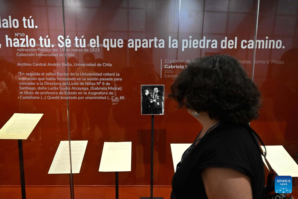 SANTIAGO, 19 dic (Xinhua) -- Una exposición multidisciplinar invita a repensar el legado de la chilena Premio Nobel de Literatura Gabriela Mistral (1889-1957), a 80 años de este reconocimiento, con piezas de arte, archivo y un video que reinterpreta con inteligencia artificial, a partir de una foto, la última visita de la poeta al país sudamericano.