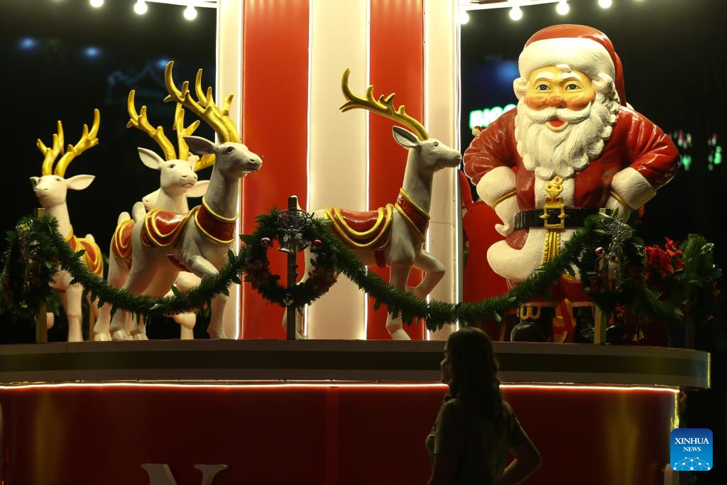 YANGON, 22 diciembre, 2025 (Xinhua) -- Imagen del 21 de diciembre de 2025 de decoraciones navideñas vistas en un centro comercial, en Yangón, Myanmar. (Xinhua/Myo Kyaw Soe)