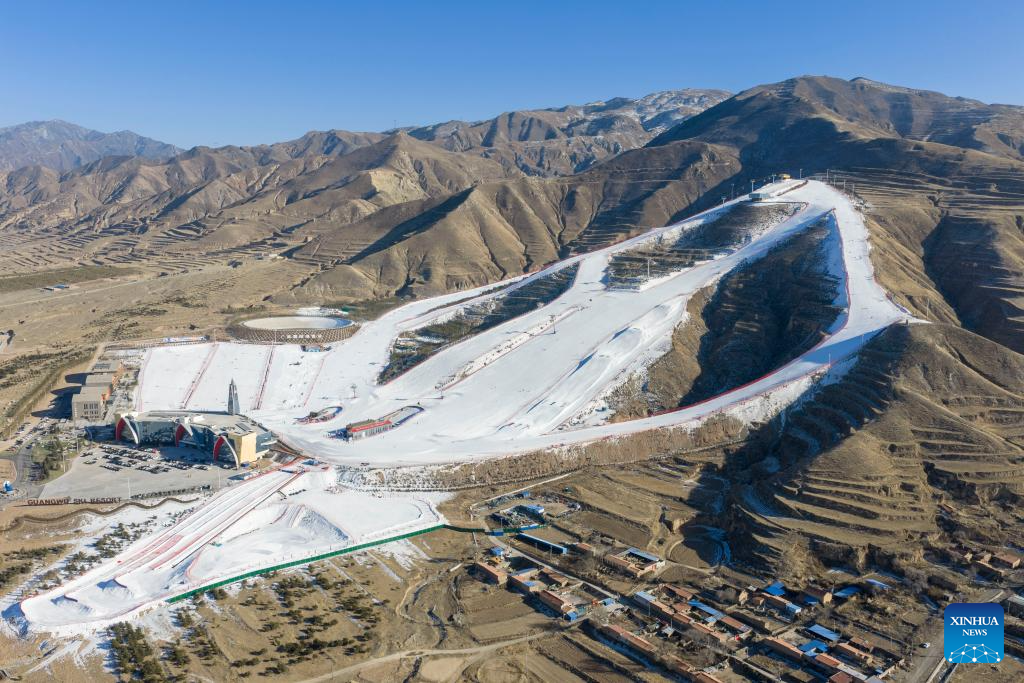 SHUOZHOU, 8 enero, 2026 (Xinhua) -- Vista aérea panorámica tomada con un dron el 8 de enero de 2026 de la estación internacional de esquí de Guangwu, en el distrito de Shanyin de Shuozhou, en la provincia de Shanxi, en el norte de China. El distrito de Shanyin ha estado aprovechando su ventaja geográfica para desarrollar el turismo temático de hielo y nieve, que ahora es un nuevo motor para la economía local. (Xinhua/Yang Chenguang)