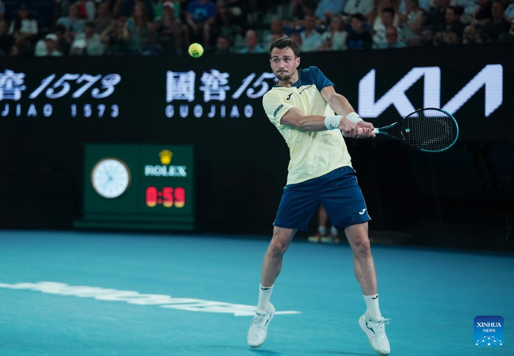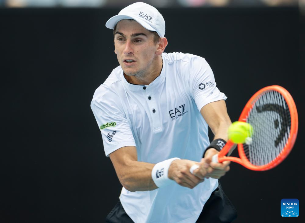 MELBOURNE, 19 enero, 2026 (Xinhua) -- Matteo Arnaldi, de Italia, devuelve la pelota durante el partido de primera ronda de individuales masculinos, ante Andrey Rublev, de Rusia, en el torneo de tenis Abierto de Australia, en Melbourne, Australia, el 19 de enero de 2026. (Xinhua/Hu Jingchen)