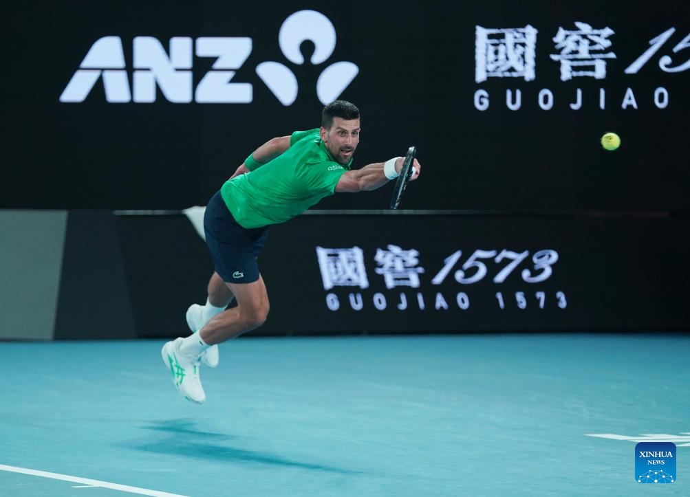 MELBOURNE, 19 enero, 2026 (Xinhua) -- Novak Djokovic devuelve la pelota durante el partido de primera ronda de individuales masculinos, entre Pedro Martínez, de España, y Novak Djokovic, de Serbia, en el torneo de tenis Abierto de Australia, en Melbourne, Australia, el 19 de enero de 2026. (Xinhua/Wang Shen)