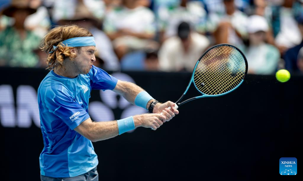 MELBOURNE, 19 enero, 2026 (Xinhua) -- Andrey Rublev, de Rusia, devuelve la pelota durante el partido de primera ronda de individuales masculinos, ante Matteo Arnaldi, de Italia, en el torneo de tenis Abierto de Australia, en Melbourne, Australia, el 19 de enero de 2026. (Xinhua/Hu Jingchen)