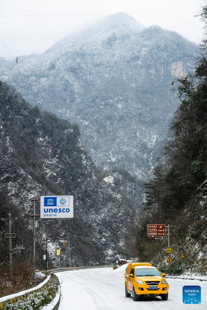 WUHAN, 21 enero, 2026 (Xinhua) -- Trabajadores realizan patrullaje vehicular por problemas de suministro eléctrico, en el poblado de Muyu, en el distrito forestal de Shennongjia, en la provincia de Hubei, en el centro de China, el 21 de enero de 2026. Ante las bajas temperaturas generalizadas y una severa formación de hielo en las líneas eléctricas en algunas áreas de gran altitud de la provincia de Hubei, los trabajadores de mantenimiento eléctrico realizaron patrullajes para garantizar el funcionamiento estable de la red eléctrica. (Xinhua/Wu Zhizun)
