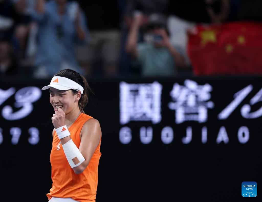 MELBOURNE, 24 enero, 2026 (Xinhua) -- Wang Xinyu festeja su victoria en el partido de tercera ronda de individuales femeninos entre Wang Xinyu, de China, y Linda Noskova, de República Checa, en el torneo de tenis Abierto de Australia, en Melbourne, Australia, el 24 de enero de 2026. (Xinhua/Ma Ping)