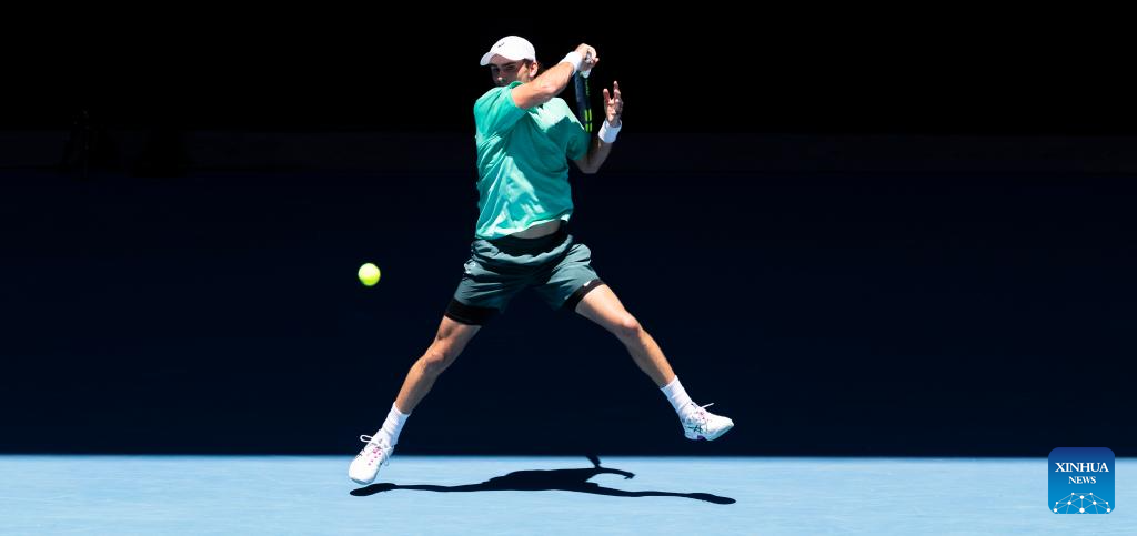 MELBOURNE, 24 enero, 2026 (Xinhua) -- Eliot Spizzirri, de Estados Unidos, compite durante el partido de tercera ronda de individuales masculinos entre Jannik Sinner, de Italia, y Eliot Spizzirri, de Estados Unidos, en el torneo de tenis Abierto de Australia, en Melbourne, Australia, el 24 de enero de 2026. (Xinhua/Hu Jingchen)
