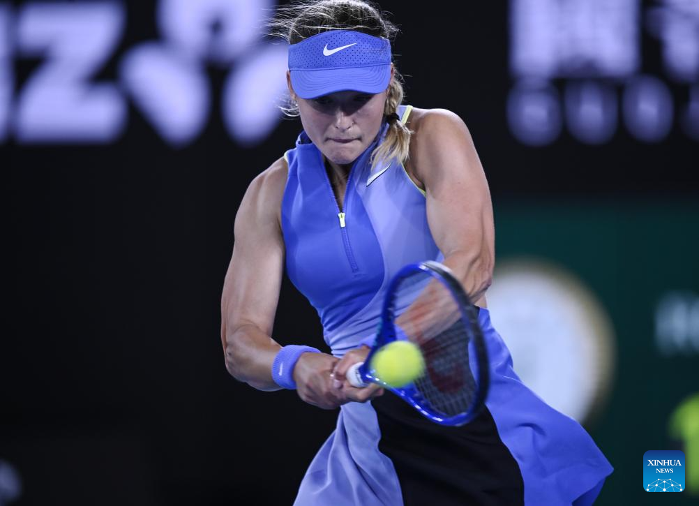 MELBOURNE, 24 enero, 2026 (Xinhua) -- Anna Kalinskaya devuelve la pelota durante el partido de tercera ronda de individuales femeninos entre Iga Swiatek, de Polonia, y Anna Kalinskaya, de Rusia, en el torneo de tenis Abierto de Australia, en Melbourne, Australia, el 24 de enero de 2026. (Xinhua/Wang Shen)