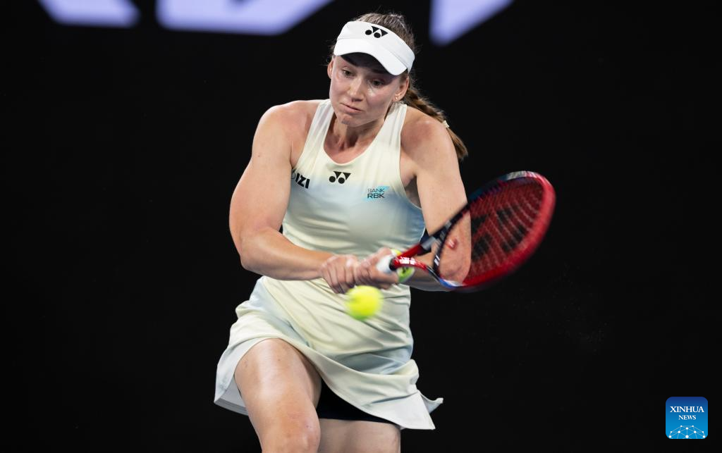 MELBOURNE, 24 enero, 2026 (Xinhua) -- Elena Rybakina devuelve la pelota durante el partido de tercera ronda de individuales femeninos entre Elena Rybakina, de Kazajistán, y Tereza Valentova, de República Checa, en el torneo de tenis Abierto de Australia, en Melbourne, Australia, el 24 de enero de 2026. (Xinhua/Hu Jingchen)