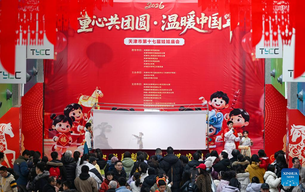 TIANJIN, 24 enero, 2026 (Xinhua) -- Personas disfrutan de un espectáculo de marionetas de sombras durante una feria del templo para niños, en Tianjin, en el norte de China, el 24 de enero de 2026. Una feria del templo especial diseñada para niños comenzó el sábado en Tianjin, en el norte de China. Multitudes de padres y niños se reunieron en la feria para experimentar el ambiente festivo previo al Festival de la Primavera. El evento presenta una variedad de actividades incluyendo la elaboración de artesanía tradicional, degustación de comida al estilo Tianjin y juegos interactivos. (Xinhua/Zhao Zishuo)
