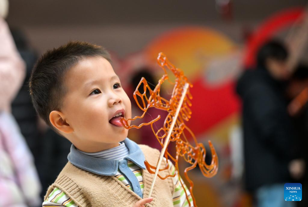 TIANJIN, 24 enero, 2026 (Xinhua) -- Un niño prueba una pintura con azúcar durante una feria del templo para niños, en Tianjin, en el norte de China, el 24 de enero de 2026. Una feria del templo especial diseñada para niños comenzó el sábado en Tianjin, en el norte de China. Multitudes de padres y niños se reunieron en la feria para experimentar el ambiente festivo previo al Festival de la Primavera. El evento presenta una variedad de actividades incluyendo la elaboración de artesanía tradicional, degustación de comida al estilo Tianjin y juegos interactivos. (Xinhua/Zhao Zishuo)