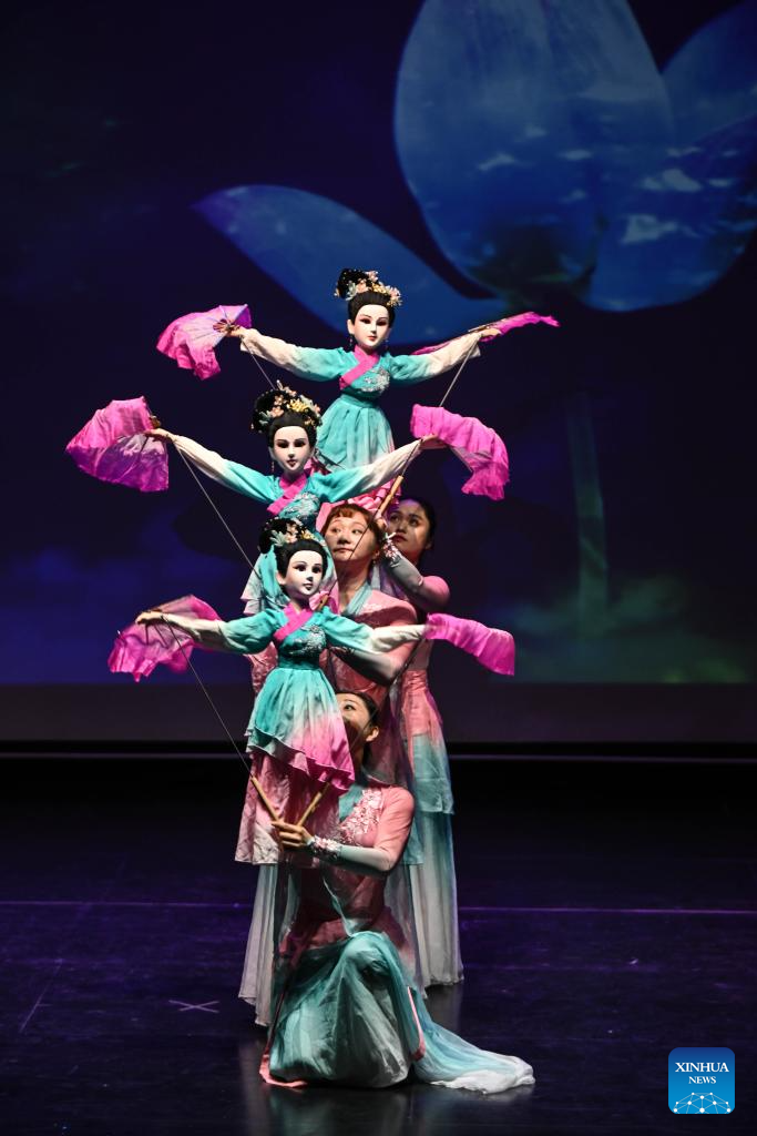 SANTIAGO, 25 enero, 2026 (Xinhua) -- Imagen del 24 de enero 2026 de una artista de la Compañía de Títeres Rugao, de China, realizando una presentación de la puesta en escena "El encanto de la marioneta oriental" en el marco del Festival Internacional Teatro a Mil, en la comuna de Pedro Aguirre Cerda, en la ciudad de Santiago, capital de Chile. Aplausos y vítores por largos minutos provocó la presentación en Chile de la Compañía de Títeres Rugao, de China, como parte del Festival Internacional Teatro a Mil, el encuentro de artes escénicas más importante de América Latina. (Xinhua/Jorge Villegas)
