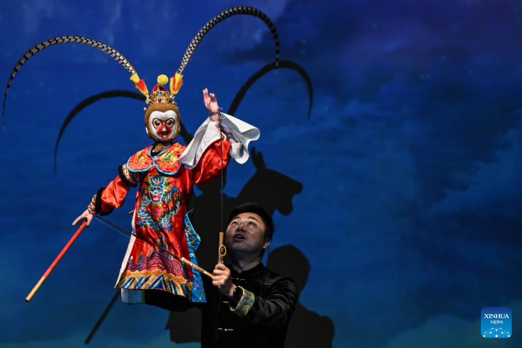 SANTIAGO, 25 enero, 2026 (Xinhua) -- Imagen del 24 de enero 2026 de un artista de la Compañía de Títeres Rugao, de China, realizando una presentación de la puesta en escena "El encanto de la marioneta oriental" en el marco del Festival Internacional Teatro a Mil, en la comuna de Pedro Aguirre Cerda, en la ciudad de Santiago, capital de Chile. Aplausos y vítores por largos minutos provocó la presentación en Chile de la Compañía de Títeres Rugao, de China, como parte del Festival Internacional Teatro a Mil, el encuentro de artes escénicas más importante de América Latina. (Xinhua/Jorge Villegas)