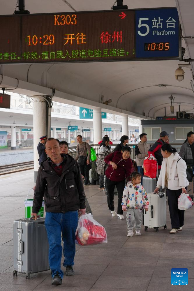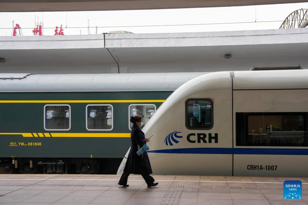 GUANGZHOU, 25 enero, 2026 (Xinhua) -- Pasajeros abordan un tren K303 en la Estación de Ferrocarril de Guangzhou, en Guangzhou, en la provincia de Guangdong, en el sur de China, el 25 de enero de 2026. El tren K303, el último tren convencional partió de aquí el domingo, concluyendo la operación terminal de este tipo de trenes en una estación de un siglo de antigüedad. (Xinhua/Wu Lu)