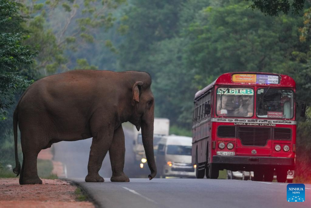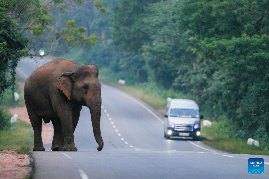 DAMBULLA, 10 febrero, 2026 (Xinhua) -- Imagen del 8 de febrero de 2026 de un elefante salvaje caminando a lo largo de una carretera, en Dambulla, Sri Lanka. Sri Lanka es uno de los países con mayor biodiversidad de Asia, donde los seres humanos y la naturaleza conviven en armonía. (Xinhua/Thilina Kaluthotage)