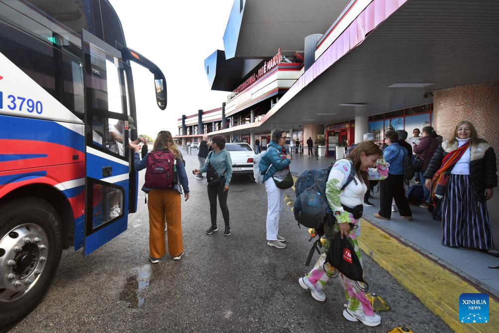 LA HABANA, 14 febrero, 2026 (Xinhua) -- Turistas extranjeros descienden de un ómnibus frente al Aeropuerto Internacional José Martí, en La Habana, capital de Cuba, el 14 de febrero de 2026. (Xinhua/Joaquín Hernández)