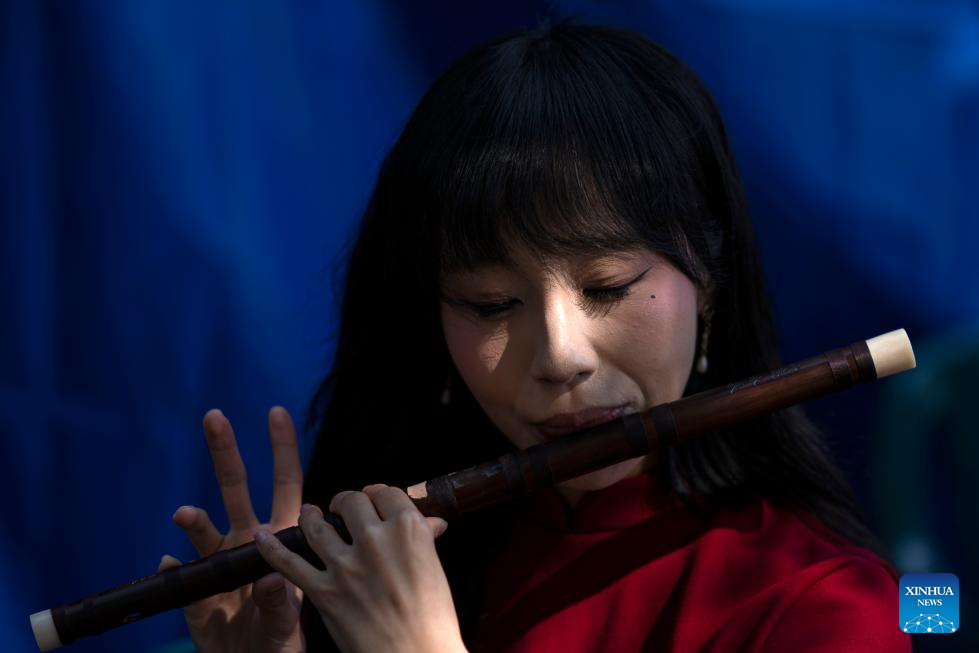 Una mujer toca un instrumento mientras se prepara para realizar una presentación durante el Festival Cultural del Año Nuevo chino "Caballo de Fuego" en el Centro Nacional de las Artes, en la Ciudad de México, capital de México, el 14 de febrero de 2026. La Ciudad de México y Beijing firmaron un Memorándum de Entendimiento para reforzar el hermanamiento entre ambas ciudades e incrementar la afluencia de turistas provenientes de China en la capital mexicana.(Xinhua/David de la Paz)