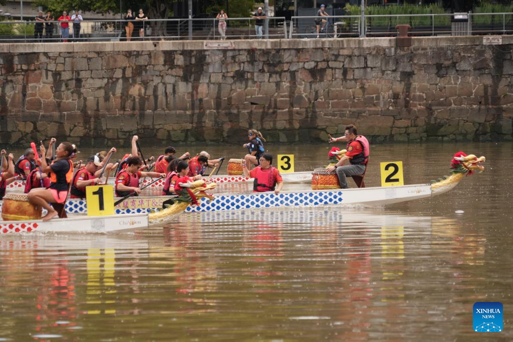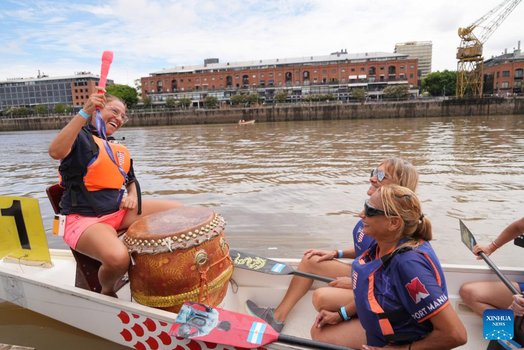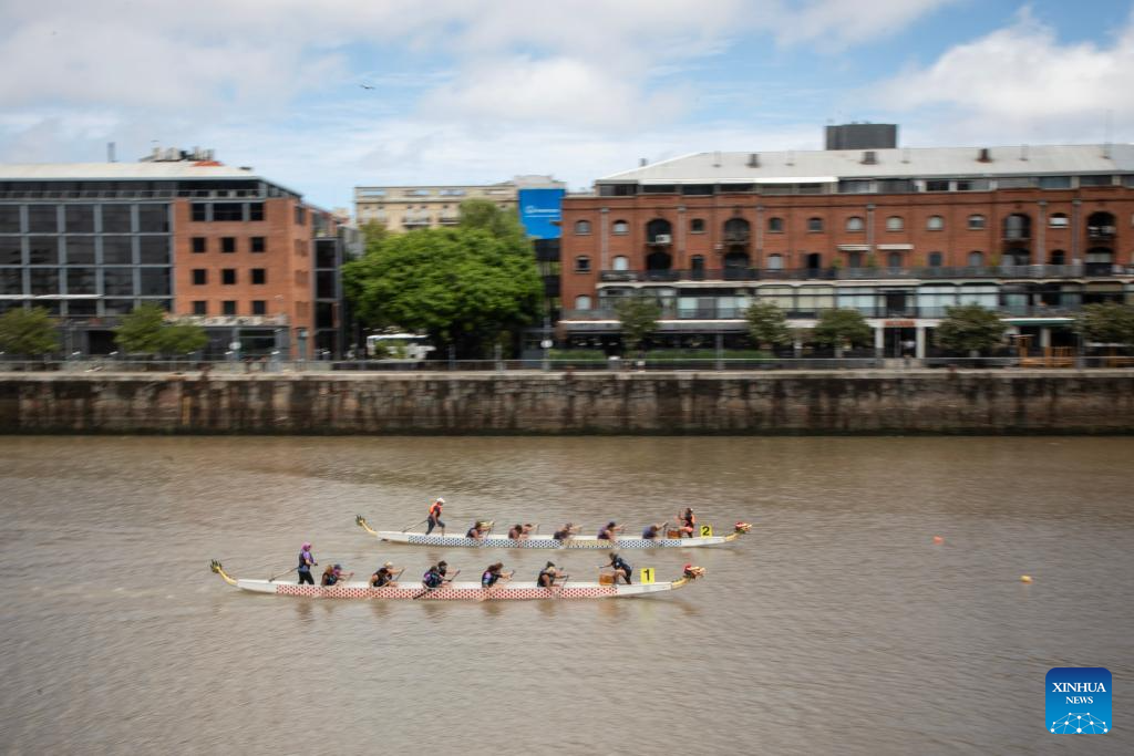 BUENOS AIRES, 16 febrero, 2026 (Xinhua) -- Imagen del 15 de febrero de 2026 de personas participando en una carrera de botes del dragón para celebrar el Año Nuevo chino, en Buenos Aires, Argentina. Los botes dragón concitaron el domingo la atención del público que se acercó a ver el espectáculo en el Dique 1 de Puerto Madero, Buenos Aires, la capital de Argentina. La actividad fue organizada por la Asociación de Botes Dragón, en el marco de los festejos previos al Año Nuevo chino que, desde este próximo martes 17 de febrero, estará regido por el Caballo en el calendario lunar. (Xinhua/Zhang Duo)