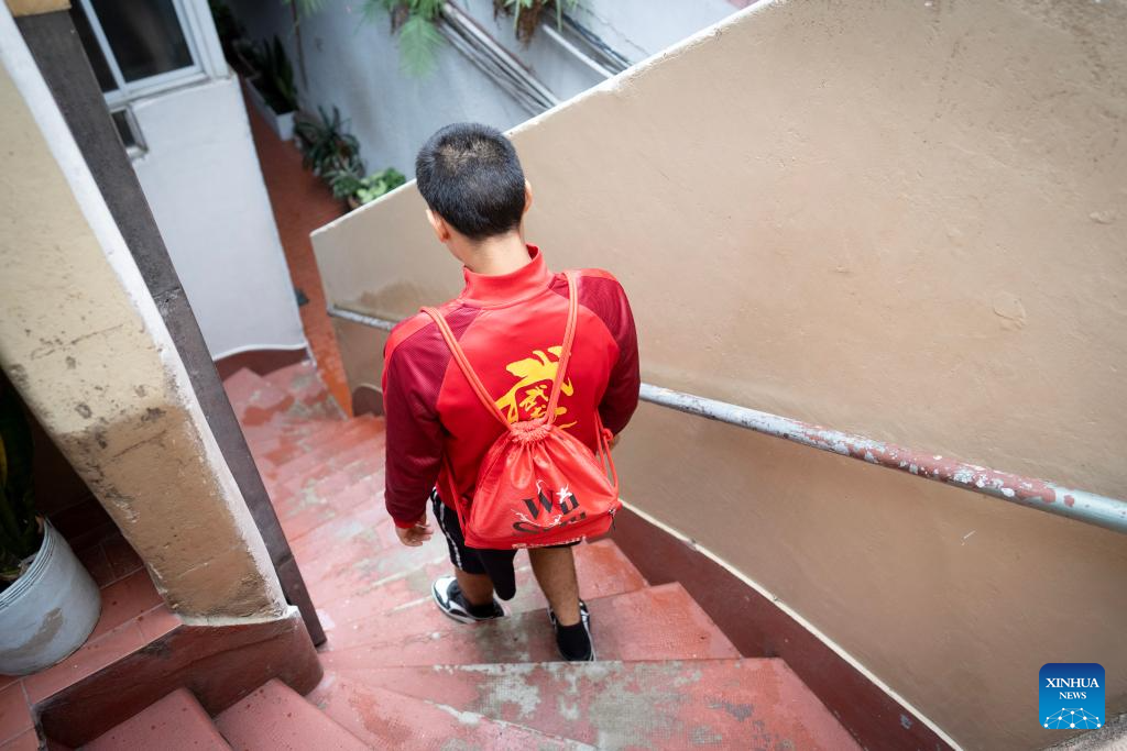 BUENOS AIRES, 18 febrero, 2026 (Xinhua) -- Imagen del 4 de febrero de 2026 de Marcos González, un joven de 14 años de edad y practicante de wushu, saliendo de su casa para dirigirse a entrenar, en la ciudad de Buenos Aires, capital de Argentina. La milenaria cultura china y sus múltiples manifestaciones, como la Fiesta de la Primavera, el arte, la música, la danza y el deporte marcial, atrae y enamora a los jóvenes de Argentina, que se suman con entusiasmo, respeto y admiración a la práctica de distintas disciplinas, costumbres y celebraciones originarias del país asiático. (Xinhua/Martín Zabala)