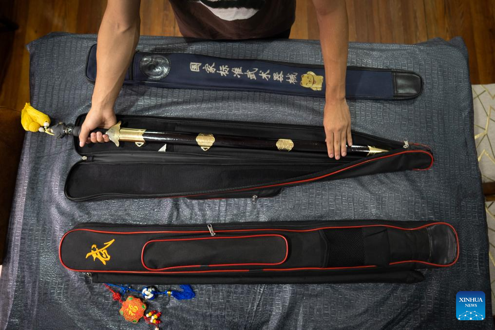 BUENOS AIRES, 18 febrero, 2026 (Xinhua) -- Imagen del 4 de febrero de 2026 de Marcos González, un joven de 14 años de edad y practicante de wushu, ordenando sus espadas en su casa, en la ciudad de Buenos Aires, capital de Argentina. La milenaria cultura china y sus múltiples manifestaciones, como la Fiesta de la Primavera, el arte, la música, la danza y el deporte marcial, atrae y enamora a los jóvenes de Argentina, que se suman con entusiasmo, respeto y admiración a la práctica de distintas disciplinas, costumbres y celebraciones originarias del país asiático. (Xinhua/Martín Zabala)