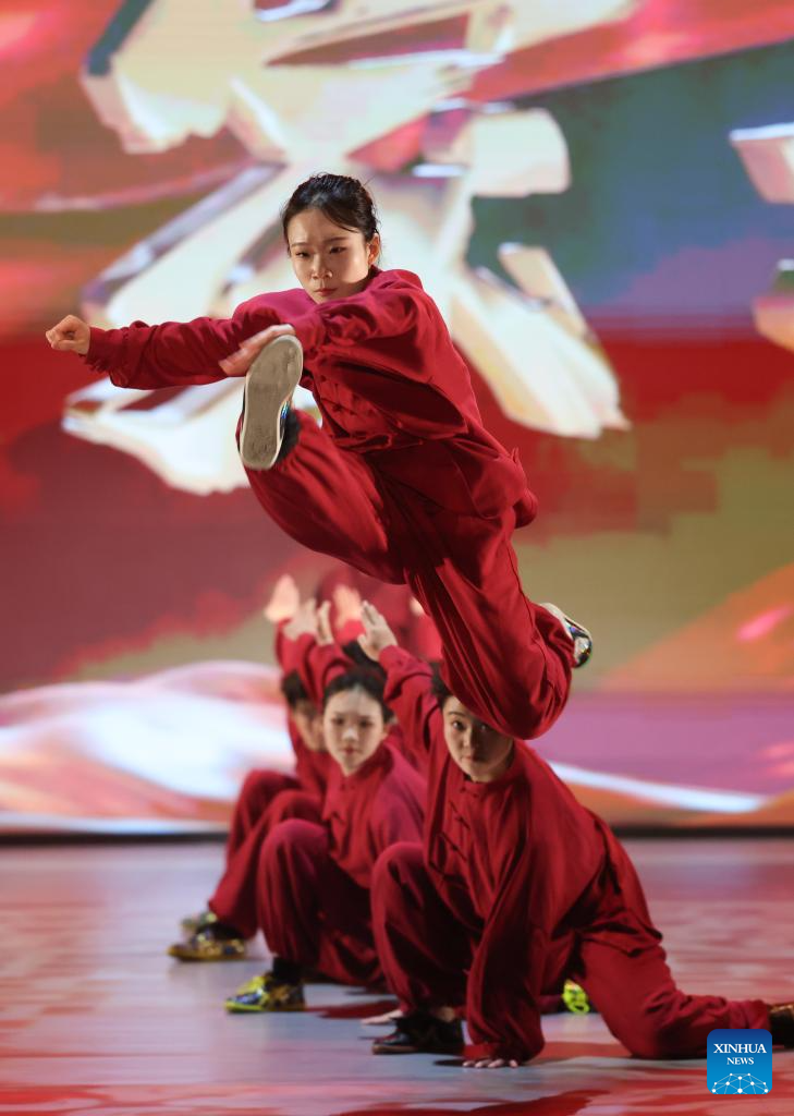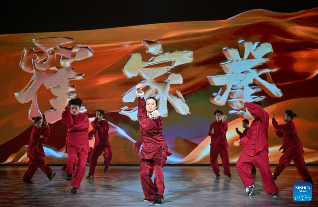 TIANJIN, 25 marzo, 2026 (Xinhua) -- Artistas realizan una presentación durante la ceremonia de inauguración del X Campeonato Mundial Junior de Wushu, en Tianjin, en el norte de China, el 25 de marzo de 2026. (Xinhua/Sun Fanyue)