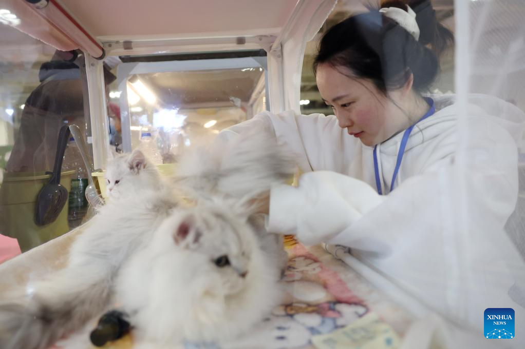 LANZHOU, 27 marzo, 2026 (Xinhua) -- Una trabajadora cepilla a un gato de compañía durante una exposición de mascotas, en Lanzhou, en la provincia de Gansu, en el noroeste de China, el 27 de marzo de 2026. El evento de tres días de duración comenzó aquí el viernes, atrayendo a cerca de 100 expositores del sector de las mascotas para mostrar diversos animales, así como alimentos para mascotas, productos inteligentes, servicios de atención médica, ropa, fotografía y mucho más en el recinto. (Xinhua/Chen Bin)