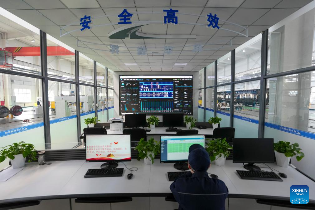 HARBIN, 16 abril, 2026 (Xinhua) -- Imagen del 15 de abril de 2026 de un técnico monitoreando la condición operativa del equipo en un sistema de control inteligente digital en un taller de China Railway Harbin Bureau Group Co., Ltd., en Harbin, en la provincia de Heilongjiang, en el noreste de China. Las autoridades ferroviarias de Harbin han desplegado diversos tipos de equipos tecnológicos inteligentes y no tripulados para satisfacer las necesidades de transporte de mercancías, garantizando la entrega eficiente de insumos agrícolas de primavera y cereales. (Xinhua/Wang Song)