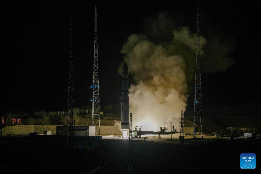 Un cohete portador Gran Marcha-6 transportando un satélite paquistaní despega desde el Centro de Lanzamiento de Satélites de Taiyuan, en la provincia de Shanxi, en el norte de China, el 25 de abril de 2026. El satélite, llamado PRSC-EO3, despegó a las 20:15 (hora de Beijing) y entró con éxito en su órbita planificada. (Xinhua/Guo Jinqi)