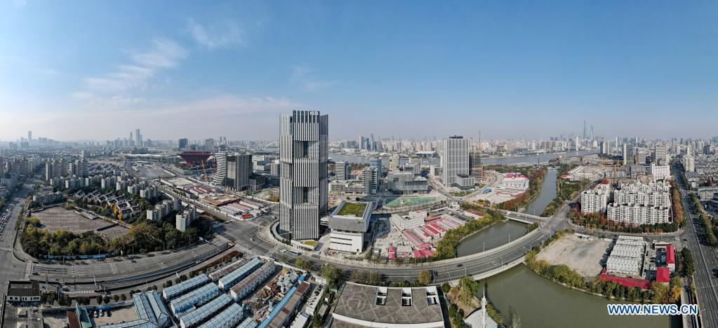 SHANGHAI, 2 septiembre, 2021 (Xinhua) -- Vista aérea del 17 de diciembre de 2020 de la vista panorámica del edificio de la sede del Nuevo Banco de Desarrollo (NBD) del grupo BRICS, en Shanghai, en el este de China. El NBD del grupo BRICS anunció el jueves al mediodía que agregará a los Emiratos Arabes Unidos, Uruguay y Bangladesh como sus miembros más recientes. (Xinhua/Fang Zhe)