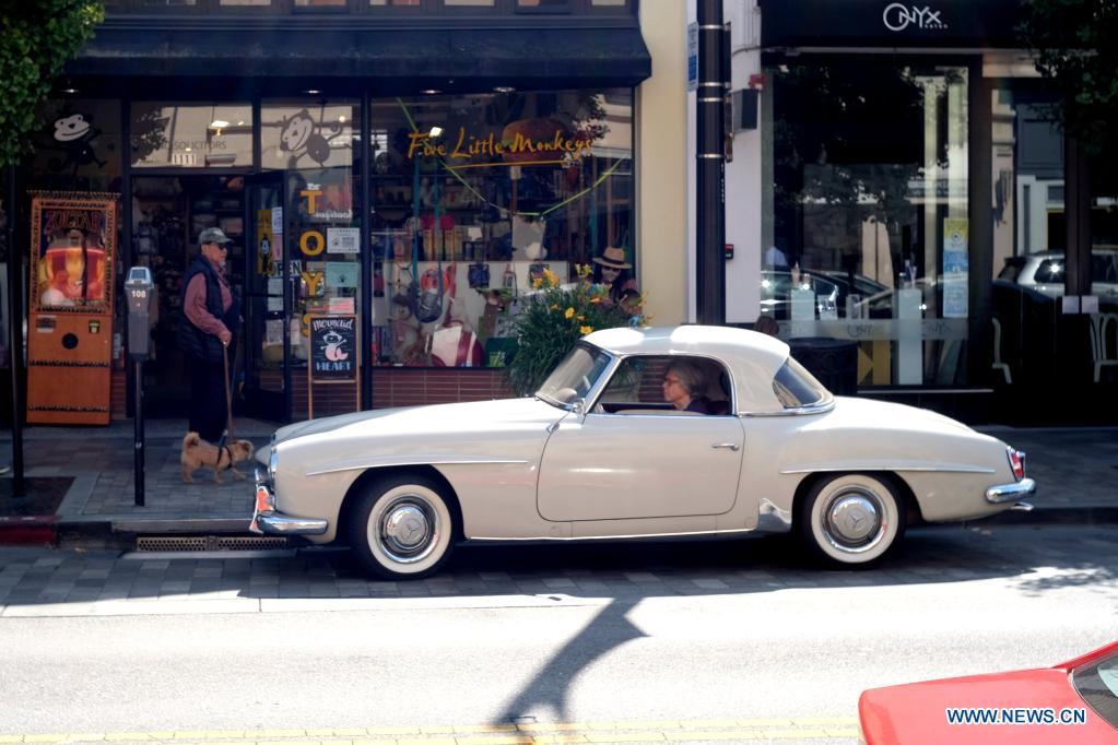 BURLINGAME, 27 septiembre, 2021 (Xinhua) -- Imagen del 26 de septiembre de 2021 de un hombre conduciendo un automóvil antiguo por una calle, en Burlingame, California, Estados Unidos. (Xinhua/Wu Xiaoling)