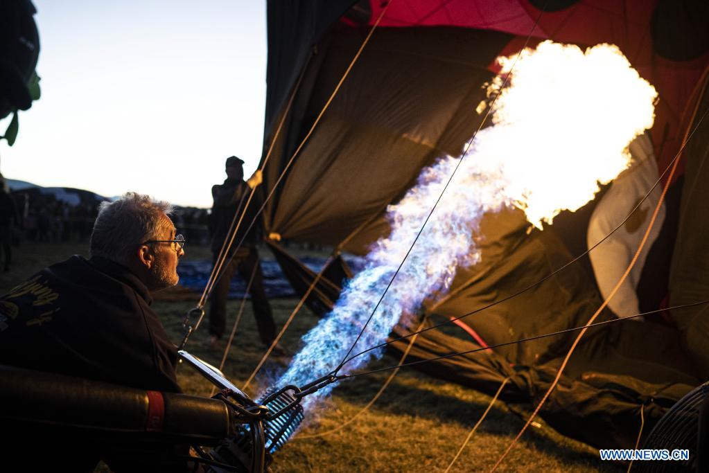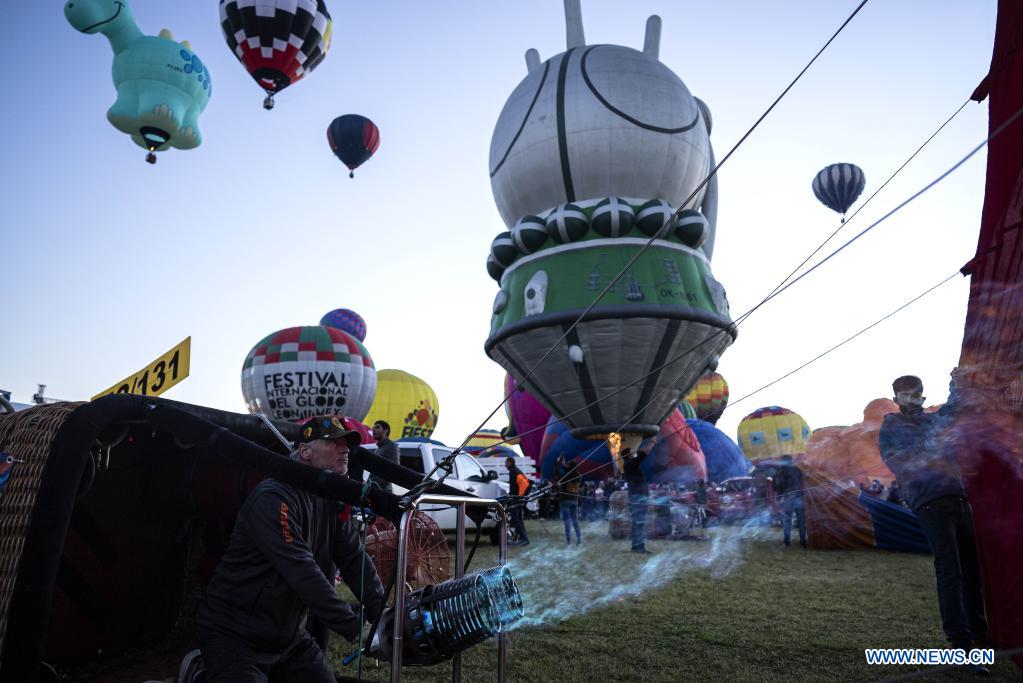 GUANAJUATO, 14 noviembre, 2021 (Xinhua) -- Un hombre prepara un globo aerostático durante el tercer día de la 20 edición del Festival Internacional del Globo 2021, en León, en el estado de Guanajuato, México, el 14 de noviembre de 2021. Unos 200 globos aerostáticos surcan desde el viernes, y hasta el próximo lunes, el cielo de la ciudad de León, Guanajuato, un espectáculo abierto al público, tras un año suspendido a causa de la pandemia de la enfermedad del nuevo coronavirus (COVID-19). (Xinhua/David de la Paz)