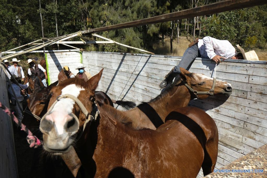 TLAXCALA, 17 noviembre, 2021 (Xinhua) -- Un trabajador de la asociación "Tlaxcala a Caballo" reacciona previo al traslado de caballos a la Ciudad de México para participar en el desfile Cívico Militar del 20 de noviembre en conmemoración al aniversario de la Revolución Mexicana, en Tlaxcala, México, el 17 de noviembre de 2021. (Xinhua/Jesús Alvarado)
