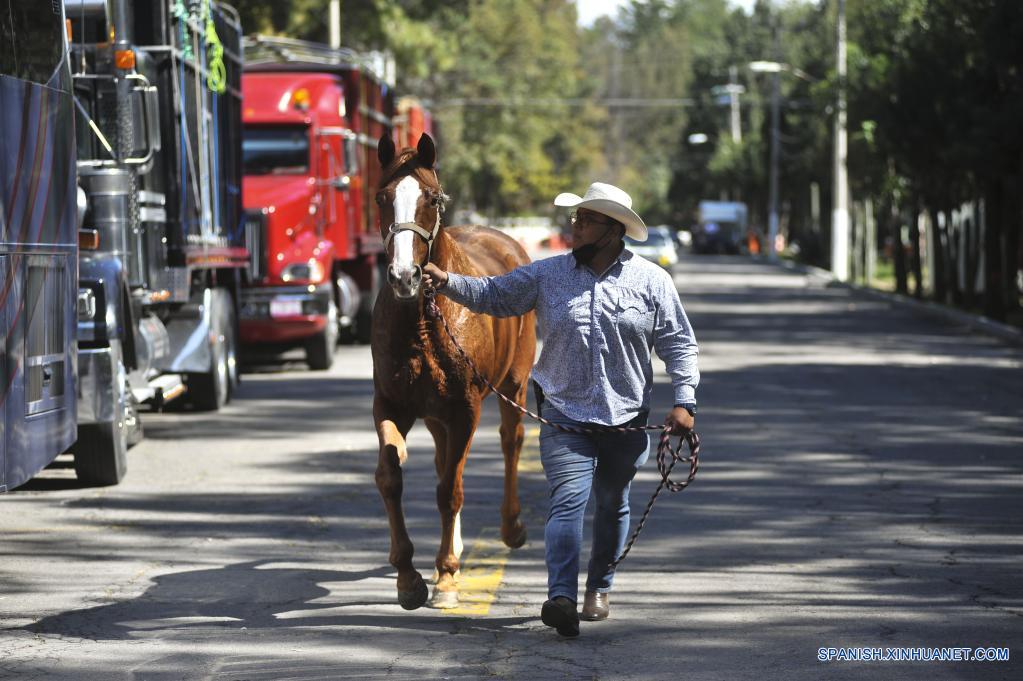 TLAXCALA, 17 noviembre, 2021 (Xinhua) -- Un trabajador de la asociación "Tlaxcala a Caballo" pasea un caballo antes de subirlo a un remolque para su traslado a la Ciudad de México para participar en el desfile Cívico Militar del 20 de noviembre en conmemoración al aniversario de la Revolución Mexicana, en Tlaxcala, México, el 17 de noviembre de 2021. (Xinhua/Jesús Alvarado)