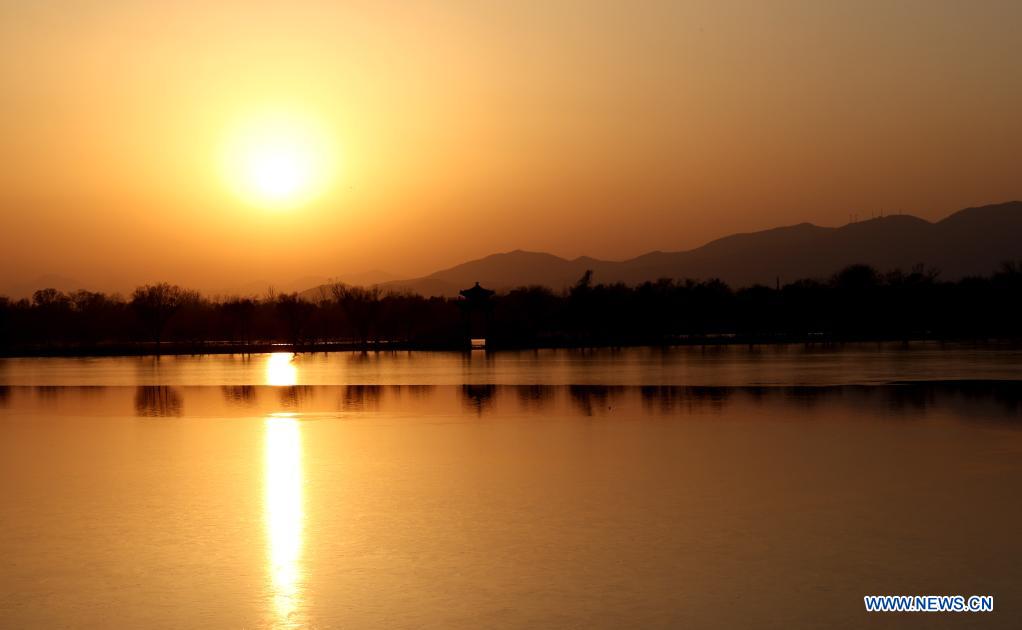 BEIJING, 25 noviembre, 2021 (Xinhua) -- Imagen del 25 de noviembre de 2021 del paisaje al atardecer del Palacio de Verano, en Beijing, capital de China. (Xinhua/Chen Jianli)